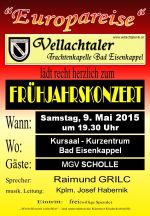 Unter dem Motto "Europareise" veranstaltet die Vellachtaler Trachtenkapelle Bad Eisenkappel am Samstag, dem 9. Mai 2015 um 19.30 Uhr das traditionelle Frühjahrskonzert im Kurzentrum Bad Eisenkappel.