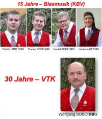 Patrick HABERNIK, Florian KOGELNIK, Harald KOGELNIK, Johanna REPNIK (alle 15 Jahre) und Wolfgang SUSCHNIG (30 Jahre) wurden für ihre langjährige Treue zur Blasmusik bzw. Vellachtaler Trachtenkapelle geehrt.