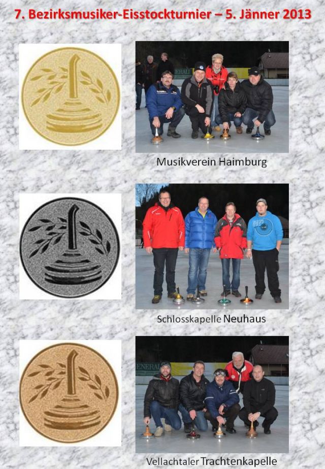 Schlechtwetter und hohe Plustemperaturen in Restösterreich - in Bad Eisenkappel konnte dennoch am Samstag, dem 5.1.2013 das 7. Bezirksmusiker-Eisstockturnier - veranstaltet von der VTK - durchgeführt werden.