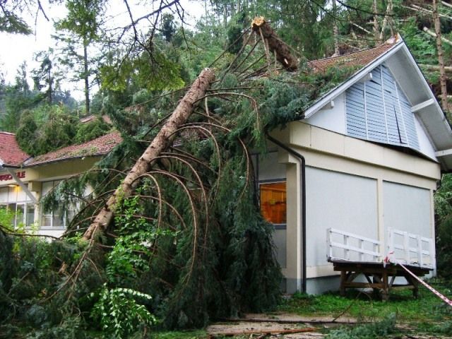 Im angrenzenden Waldstück wurden Bäume entwurzelt und krachten auf die parkenden Fahrzeuge, das Kurzentrum-Therapiegebäude und unser Probelokalgebäude.