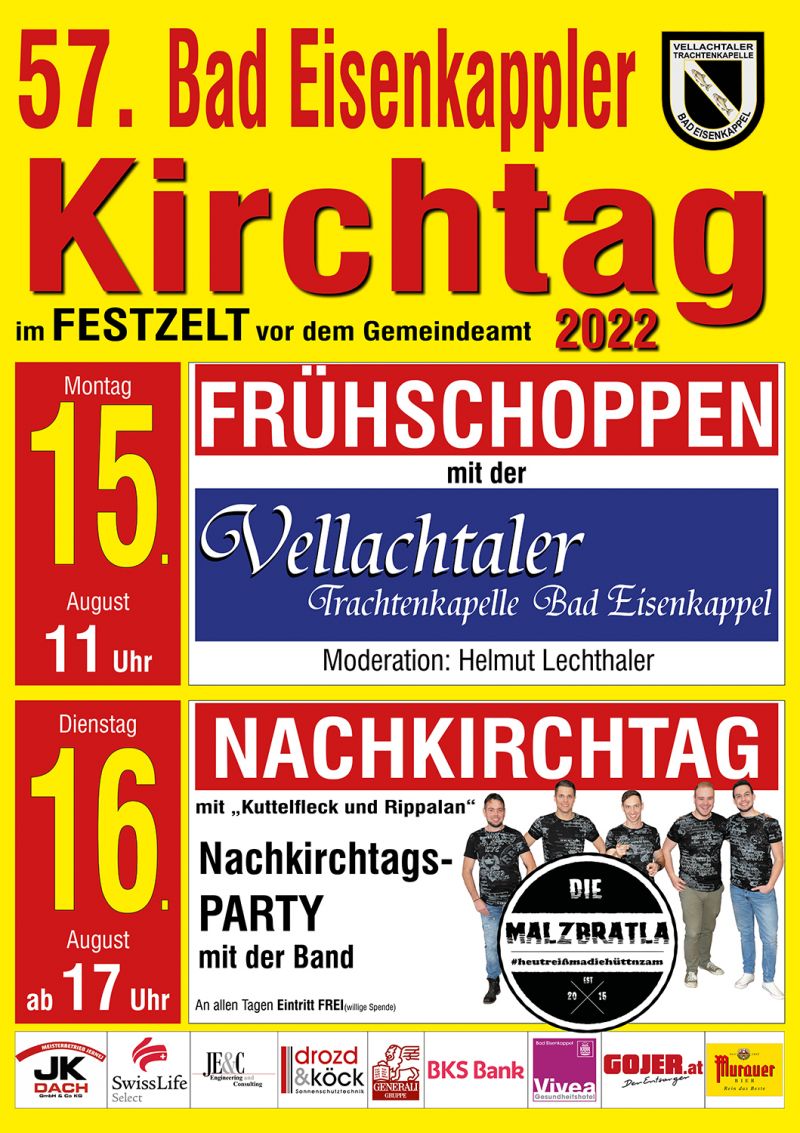 Nach 2-jährigem coronabedingten Ausfall laden wir herzlich zum 57. Bad Eisenkappler Kirchtag ein.